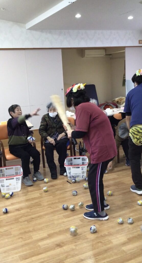 あいおい節分 HOMEブログページブログあいおいブログあいおい節分 calendar_today 2026年2月9日 鬼は外!福は内!ということで 2月3日に節分の豆まきを行いました もちろん鬼役にはあいおい職員です 日頃からあなたには優しくしてもらってるからね! 豆なんて当てられないよ!!!なんておっしゃっておりましたが… いざ始まってみれば これでもか!!!っと豆に見立てたボールを投げる!投げる! たまらず鬼役の職員も怯んでしまいました 鬼役の職員は大変でしたでしょうが 利用者の皆様には無病息災のご利益が届いたことと思います