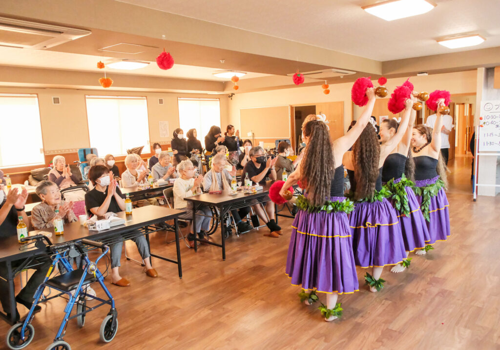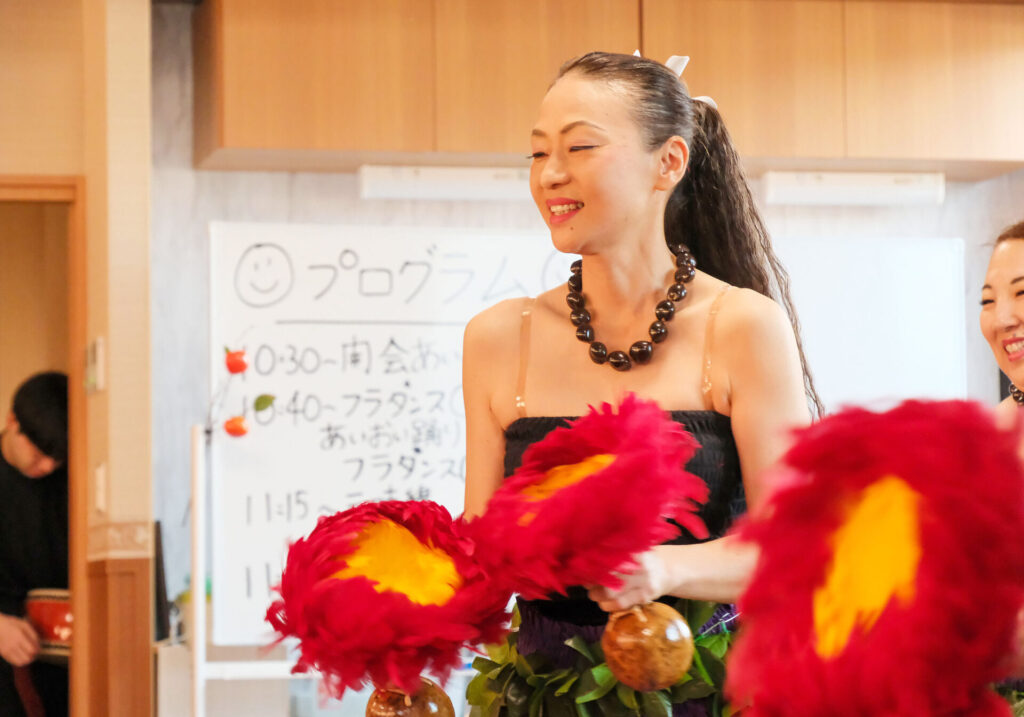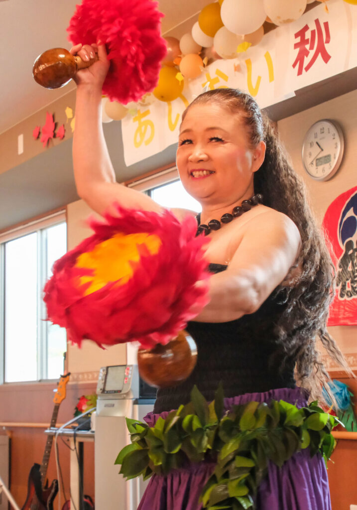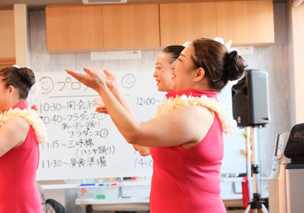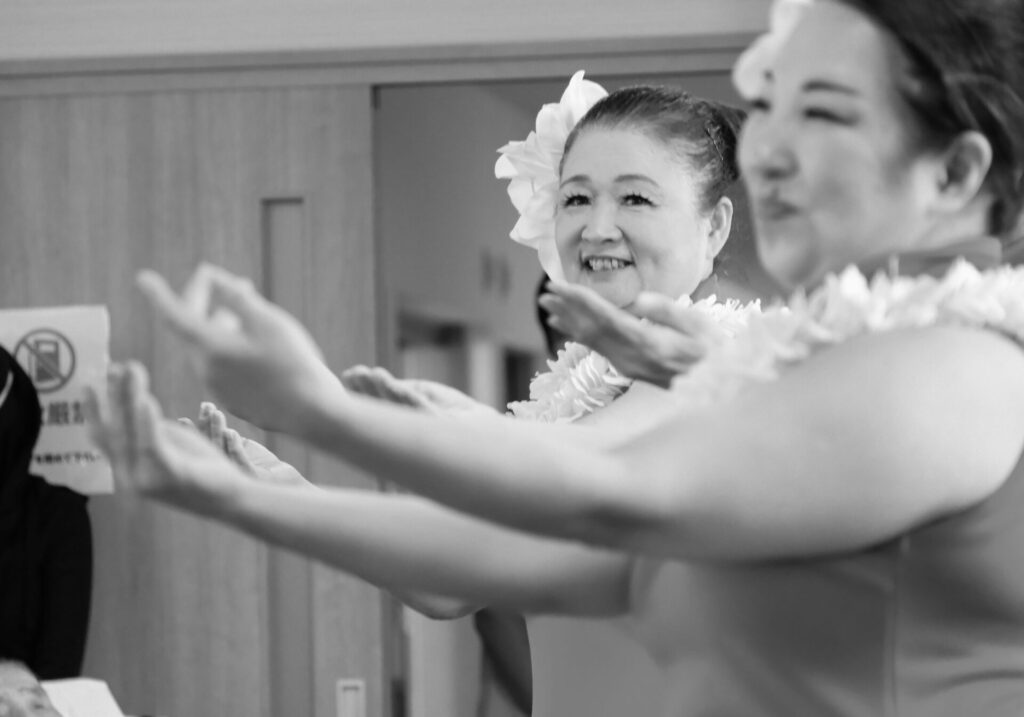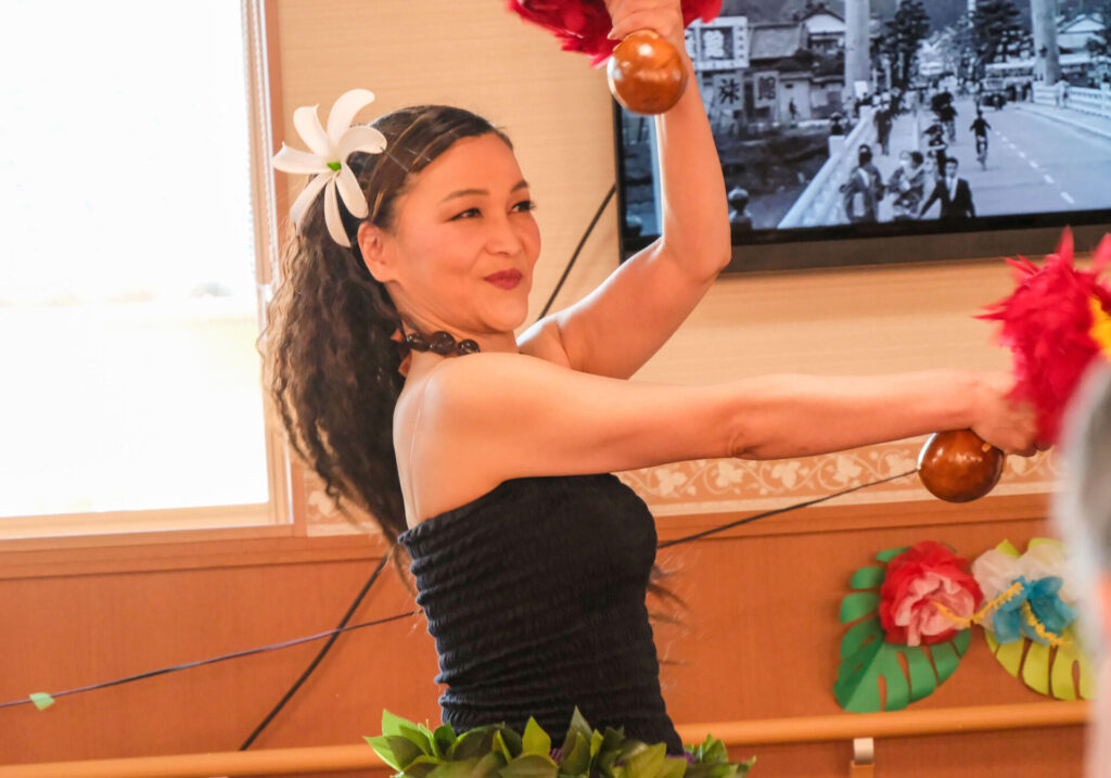 間近で見るフラの美しさ、明るい笑顔に心癒されます。