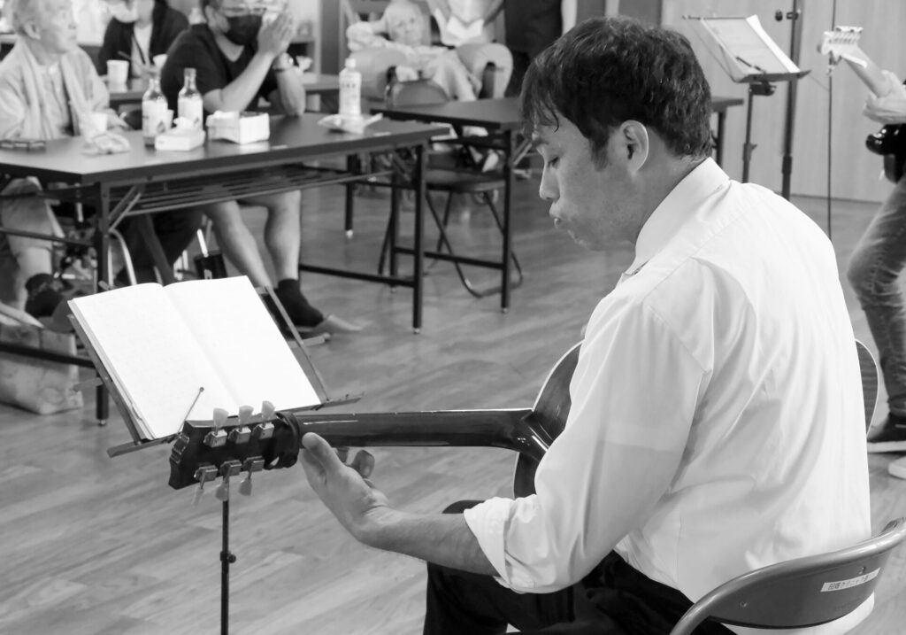 まずは、軽やかに音楽をかき鳴らしながら、開会のご挨拶。