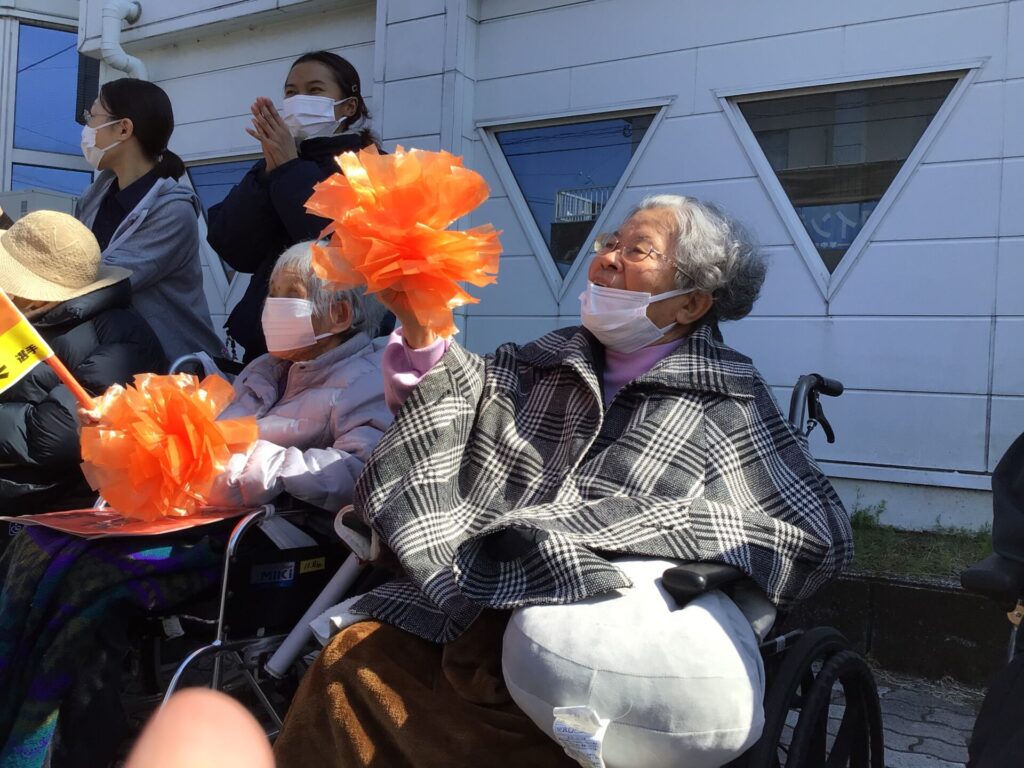 県下一周駅伝NO2 HOMEブログページブログあいおいブログ県下一周駅伝NO2 calendar_today 2026年2月21日 特養あいおいの郷が駅伝ランナー🏃の応援に行くと聞いて 小規模多機能ホームあいおいの利用者様もご一緒させて頂く事でした あいおいの郷の皆さんが作った、応援グッズを貸していただき ランナー🏃が通過するを待ち構えております 10分ほど待っていると… ものすごいスピードで、次から次へとランナーが駆け抜けて行きます 小多機あいおいの利用者様も負けじと、目の前通過するランナー1人1人に大きな声援を届けます 今日から5日間選手の皆さんは、郷土の期待を背負って県下を走り抜けます🏃 指宿チームがんばれ🚩